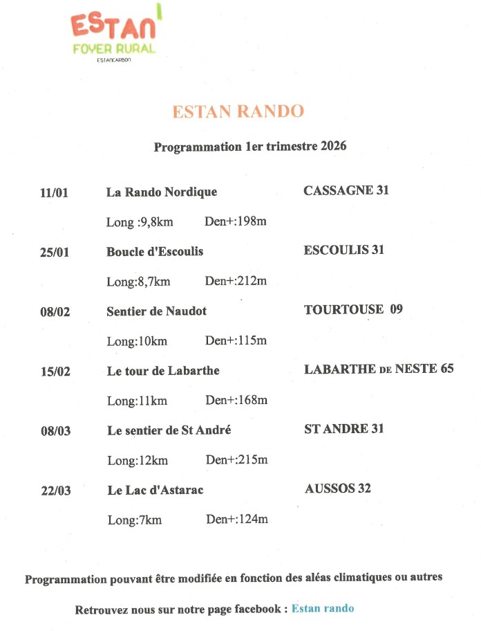 Présidente : Madame Patricia SENTENAC : foyerrural.estancarbon@gmail.com
